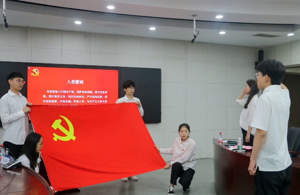 党课最后,全体党员重温入党誓词,铮铮誓言,拳拳初心,是理想信念的铭记,是矢志不渝的奋斗。